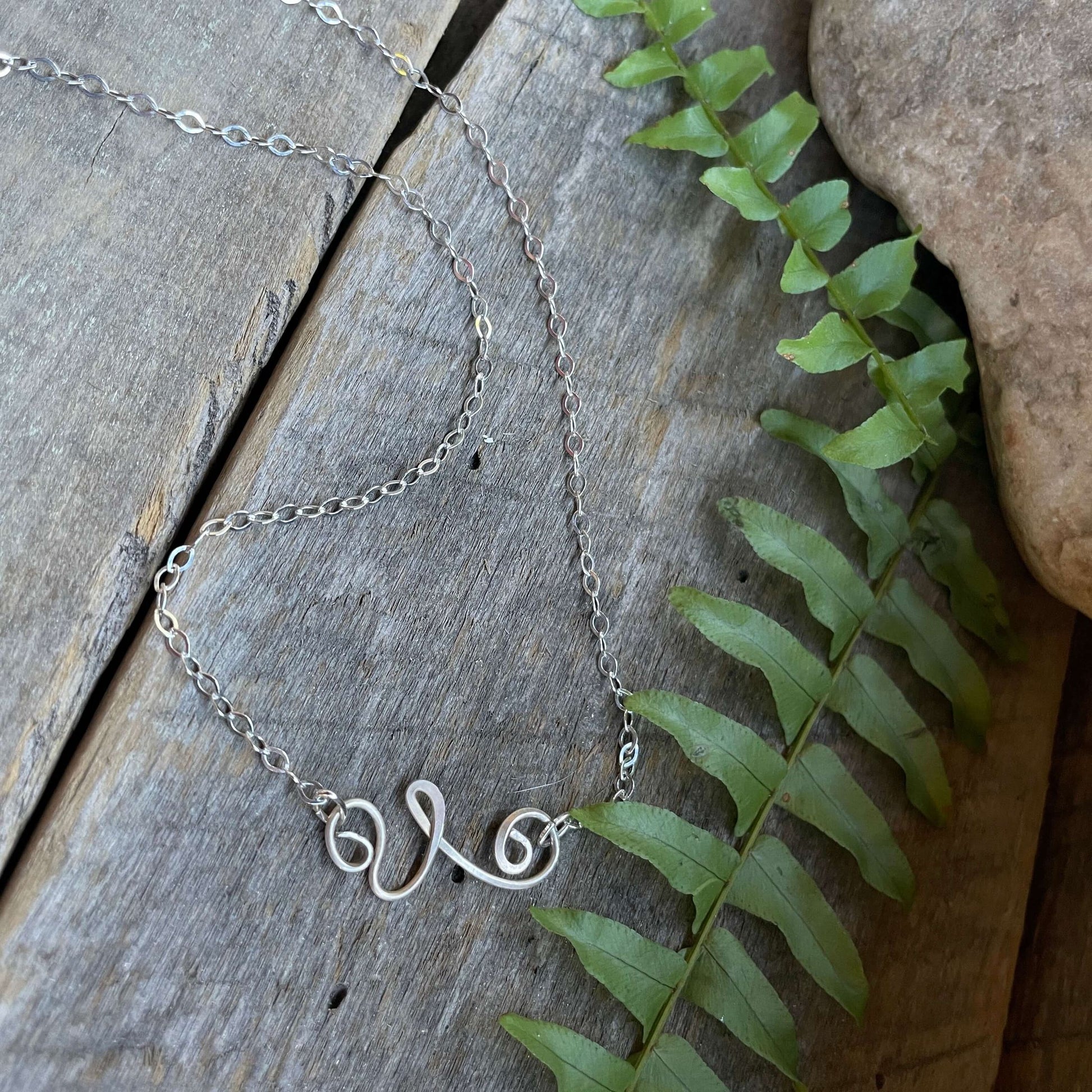 Get ready to add some whimsy to your wardrobe with this sterling silver swirl necklace! Handcrafted from sterling wire that's been carefully shaped, hammered, hardened, and shined, this delicate piece is perfect for everyday wear.